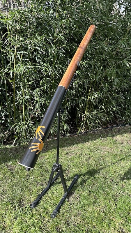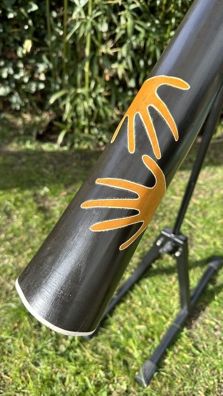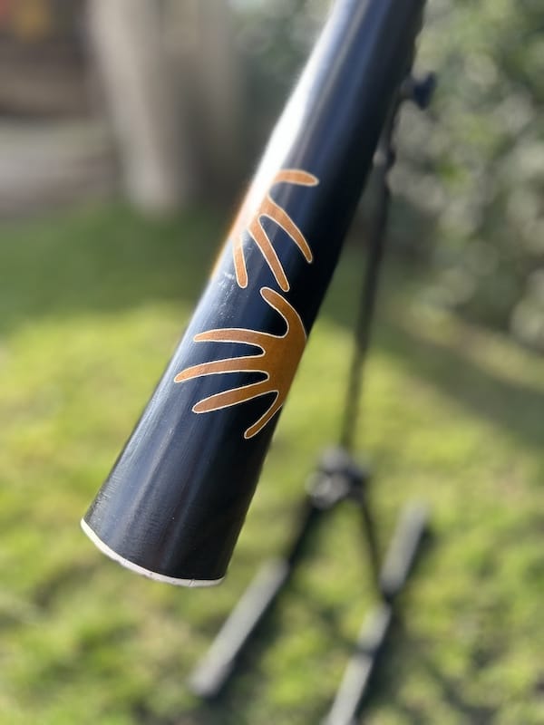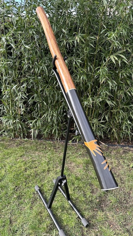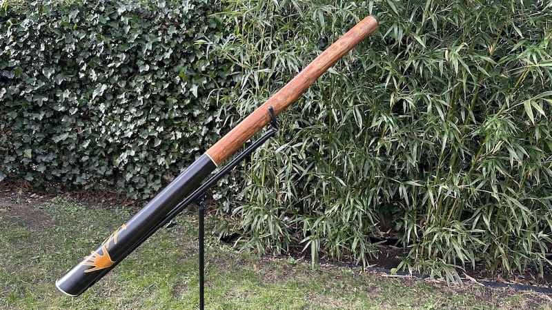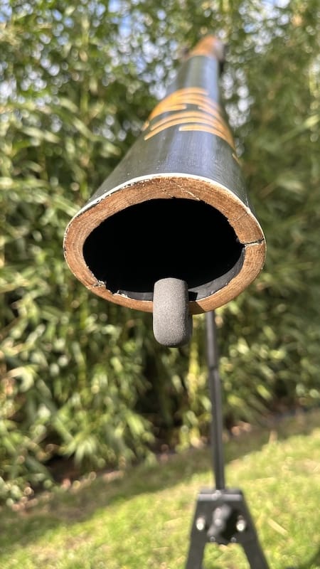 De didge bevat een zeer solide black-wax mondstuk wat erg fijn speelt. De black-wax is een mengeling van harde en zachte, bruine en zwarte wax soorten. Een soort “geheim recept”. Het resultaat is zeer solide wax, droogt niet uit en kan zelfs tegen een licht stootje.