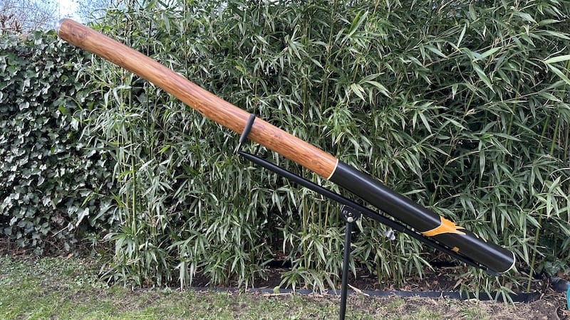 Gemaakt van een Nederlandse Zeeuwse Iep. Jaren gedroogd, nauwkeurig gesplitst (naad is nagenoeg niet zichtbaar) en vervolgens met traditioneel handgereedschap uitgehold. Een zeer lichte didgeridoo voor dit formaat (zie bovenstaand). Luister het geluidsfragment om te voelen of deze bij je past.